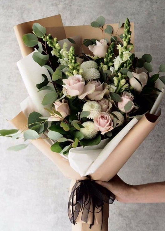 Buchet Romantic cu Trandafiri Roz-Mov și Eucalipt